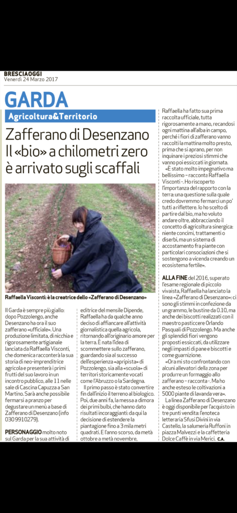 BRESCIAOGGI – GARDA: agricoltura e territorio. “Zafferano di Desenzano: Il «bio» a chilometri zero è arrivato sugli scaffali