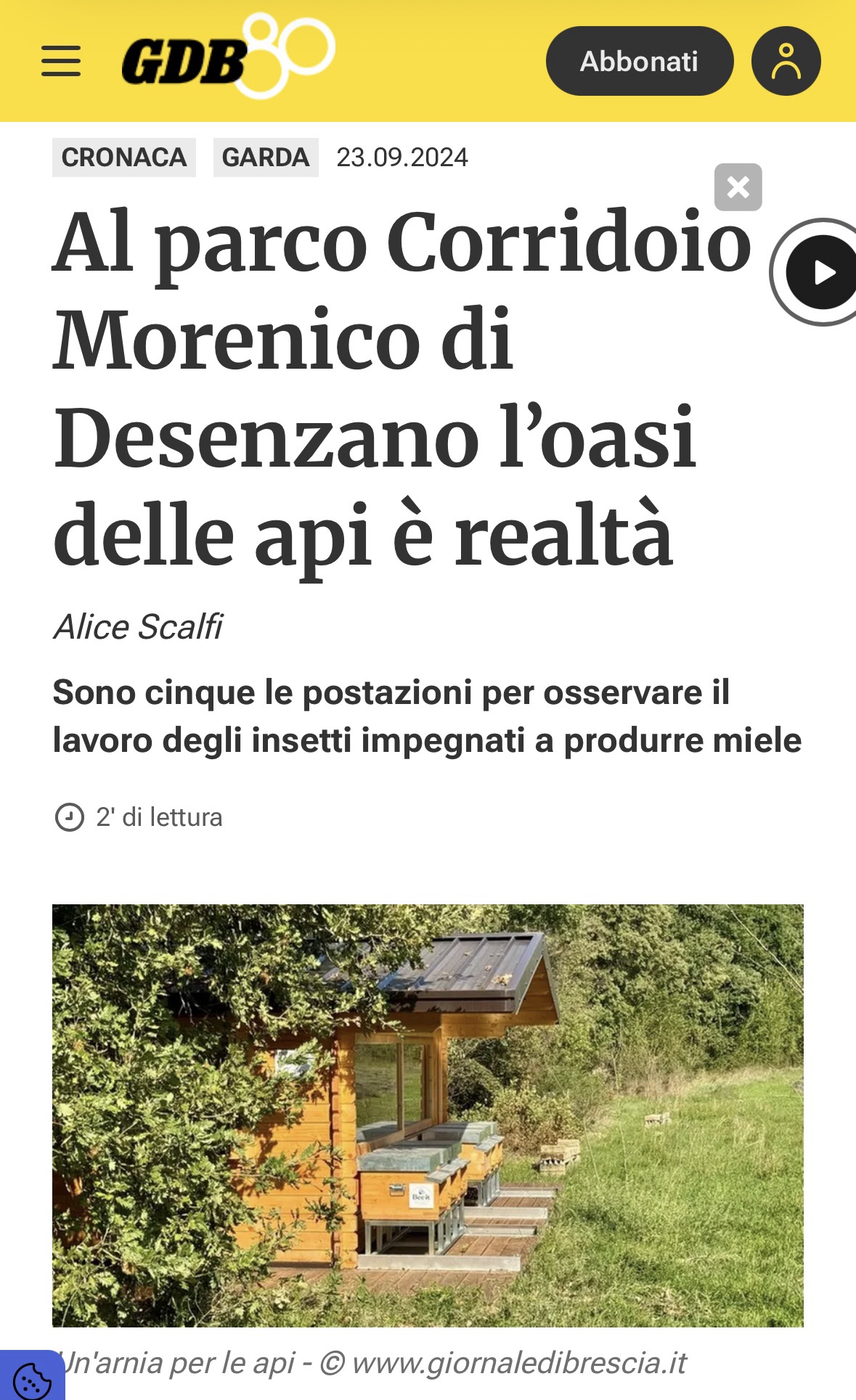 GIORNALE di BRESCIA – Al Parco corridoio morenico di Desenzano l’oasi delle api è realtà –